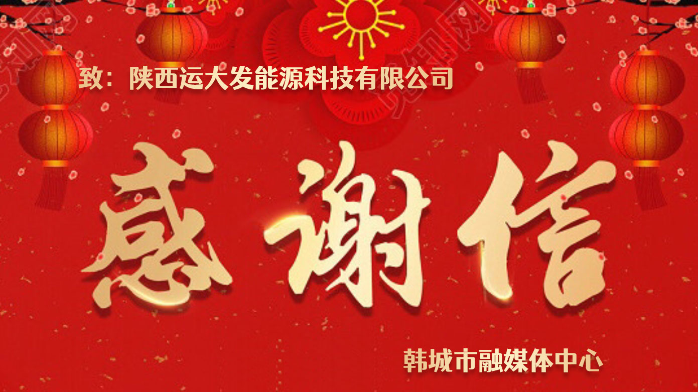 韩城市融媒体中心致陕西运大发能源科技有限公司的感谢信